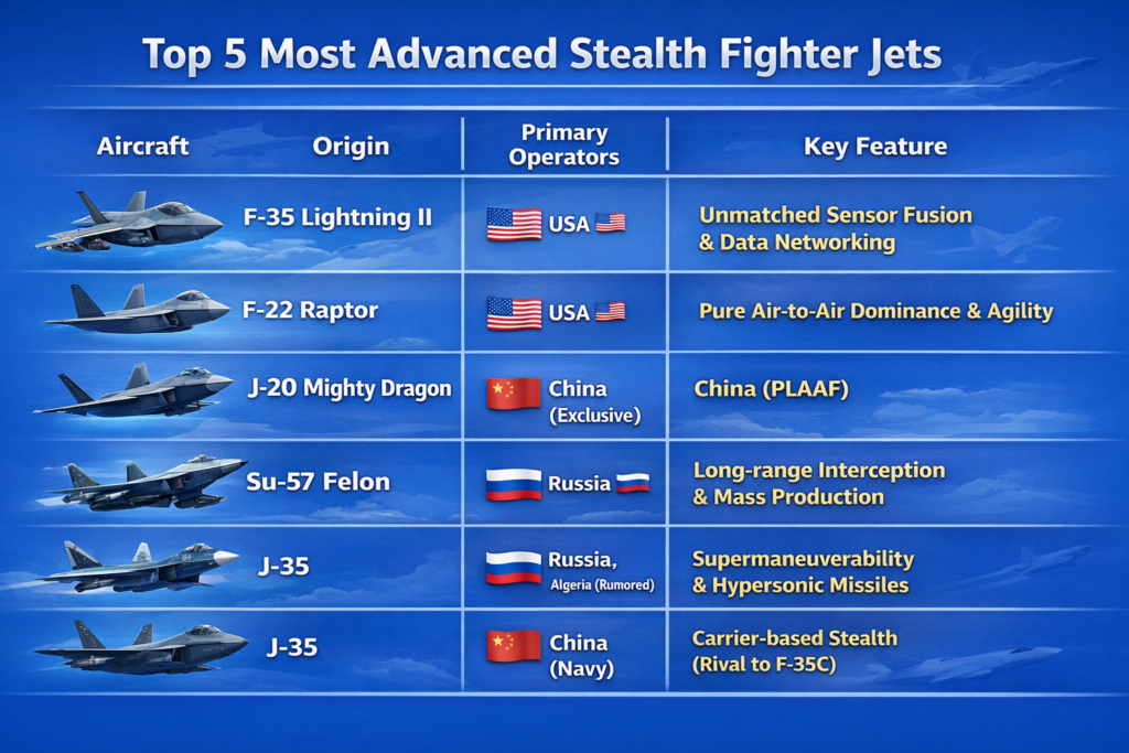 - The New Standard: 5th-Generation fighters like the F-35 and J-20 are no longer “future tech”—they are the operational backbone of major powers in 2026.