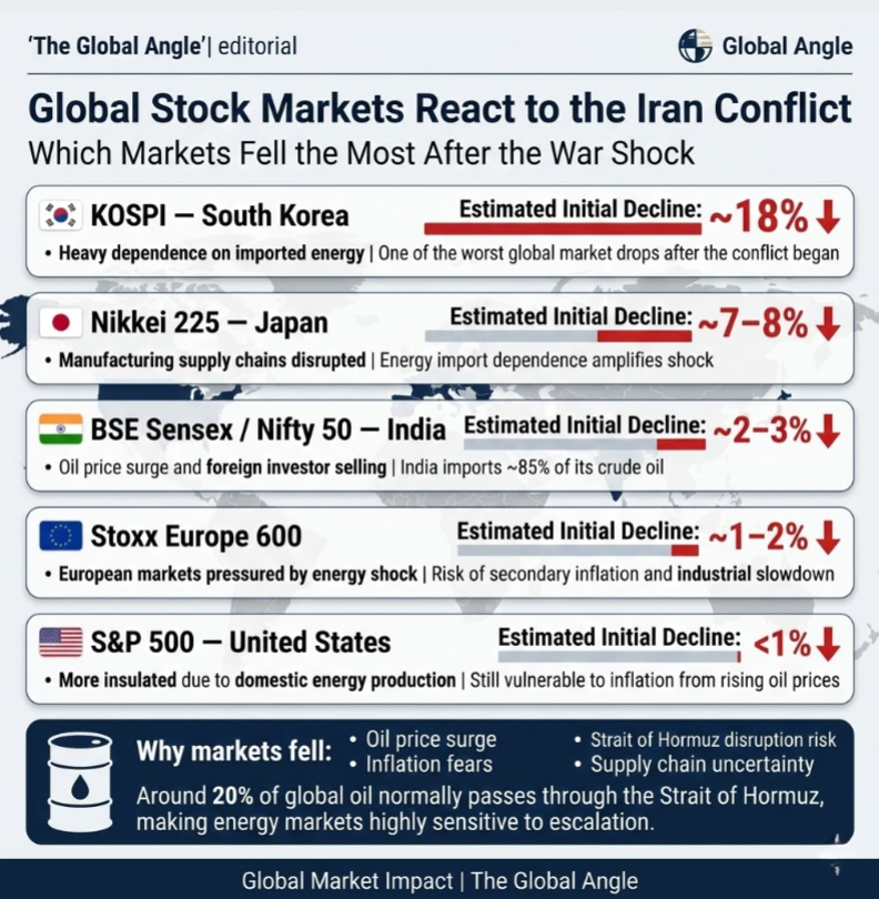 | KOSPI | South Korea | ~18.4% | Highly vulnerable due to massive energy imports; experienced the steepest initial crash but saw sharp intraday volatility. |