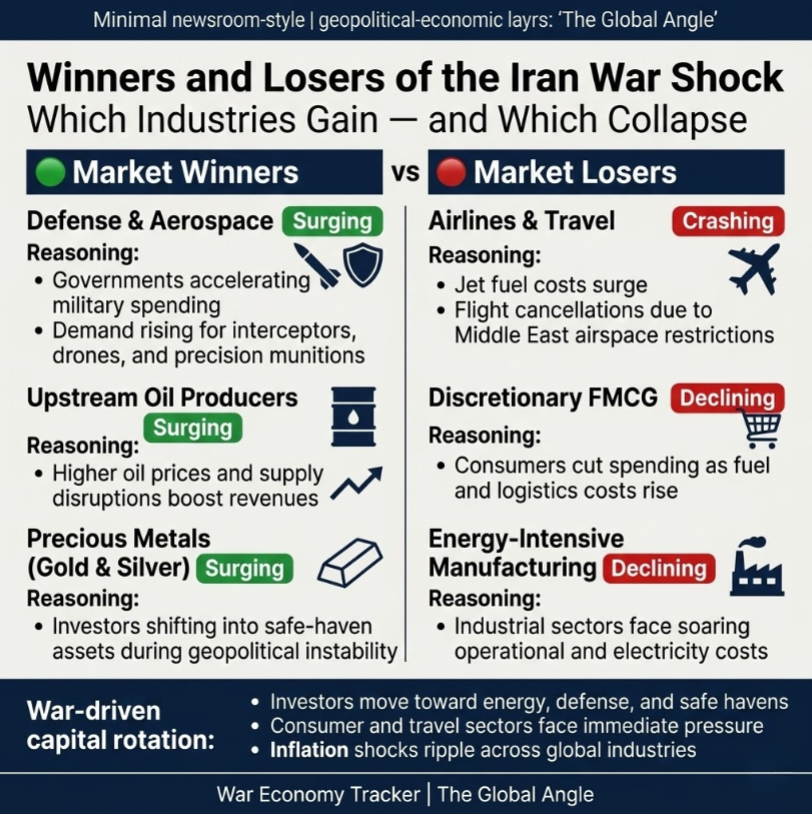 | Airlines & Travel | Crashing (Loser) | Highly sensitive to sudden jet fuel price spikes and mass cancellations due to restricted Middle East airspace. |