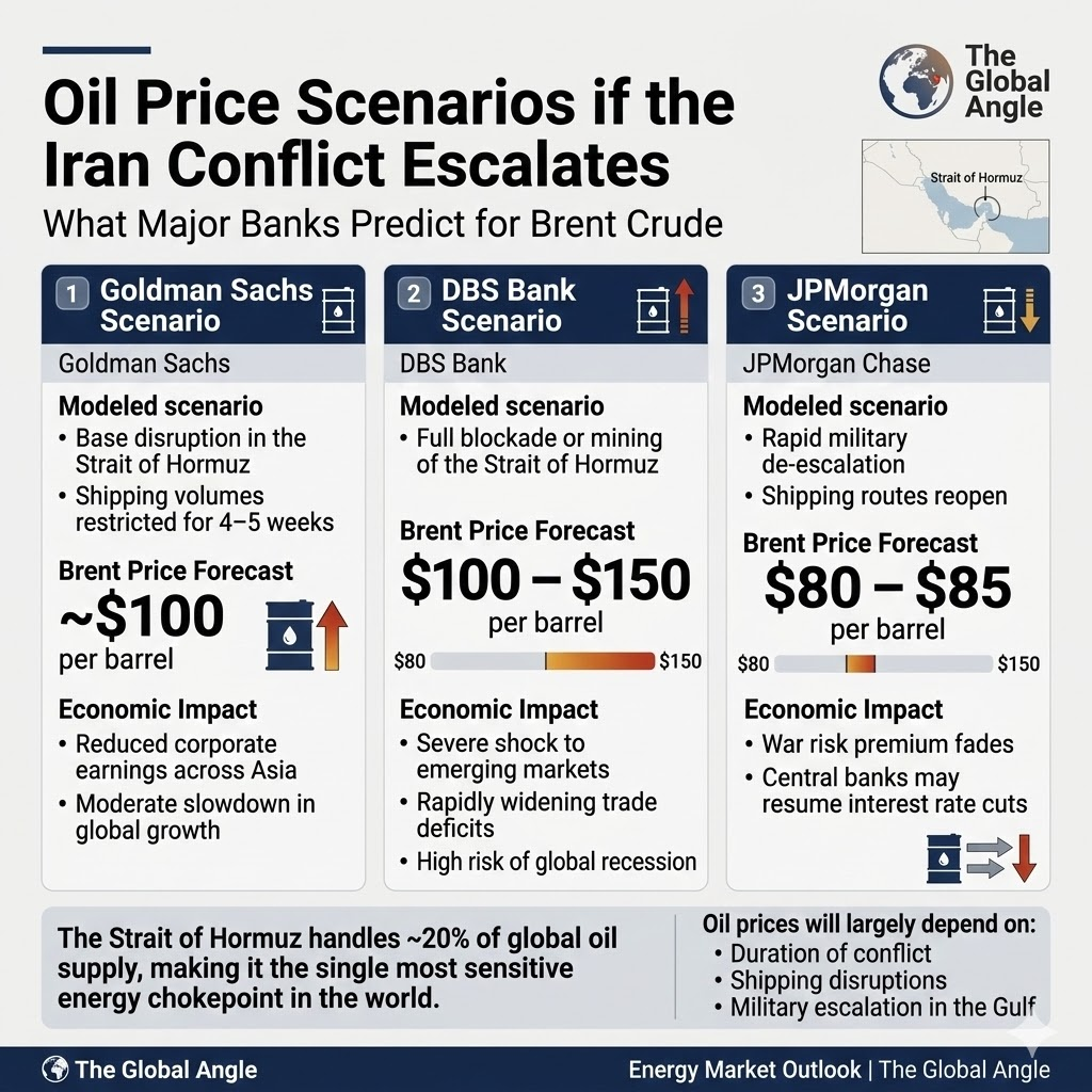 | DBS Bank | Extreme Disruption: Full, prolonged blockade or mining of the Strait of Hormuz. | $100 – $150 / barrel | Devastates emerging economies, widens current account deficits rapidly, and triggers a severe global recession. |